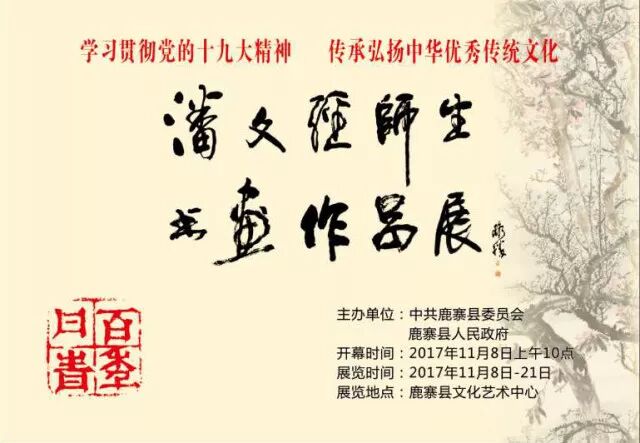 11月8日上午,由中共鹿寨县委员会、鹿寨县人民政府主办的——“百年丹青”潘文经师生书画作品展在县文化艺术中心开幕。