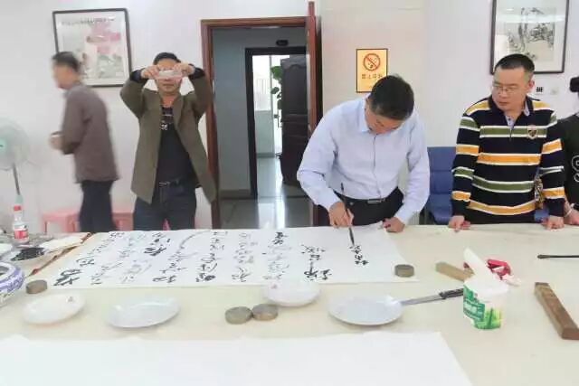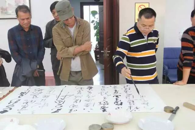 在随后进行的交流笔会上,各界书画爱好者互相交流沟通,很多老师为鹿寨留下珍贵墨宝。