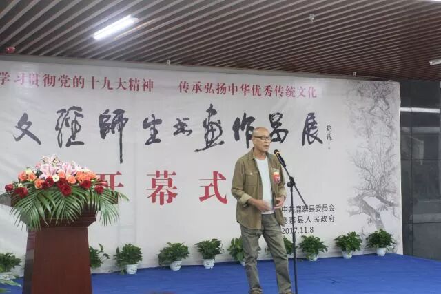 县委宣传部部长陈波在会上对到场嘉宾对鹿寨文化事业的关心和支持表示感谢,表示要努力做好阵地建设,欢迎书画大师们拿作品到鹿寨来展出;文化传承要从娃娃抓起,教育部门要把书画列入课程;同时继续加强对潘文经等名家作品推介,推动鹿寨文化发展。