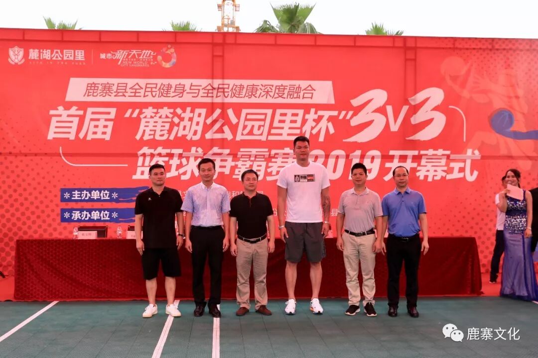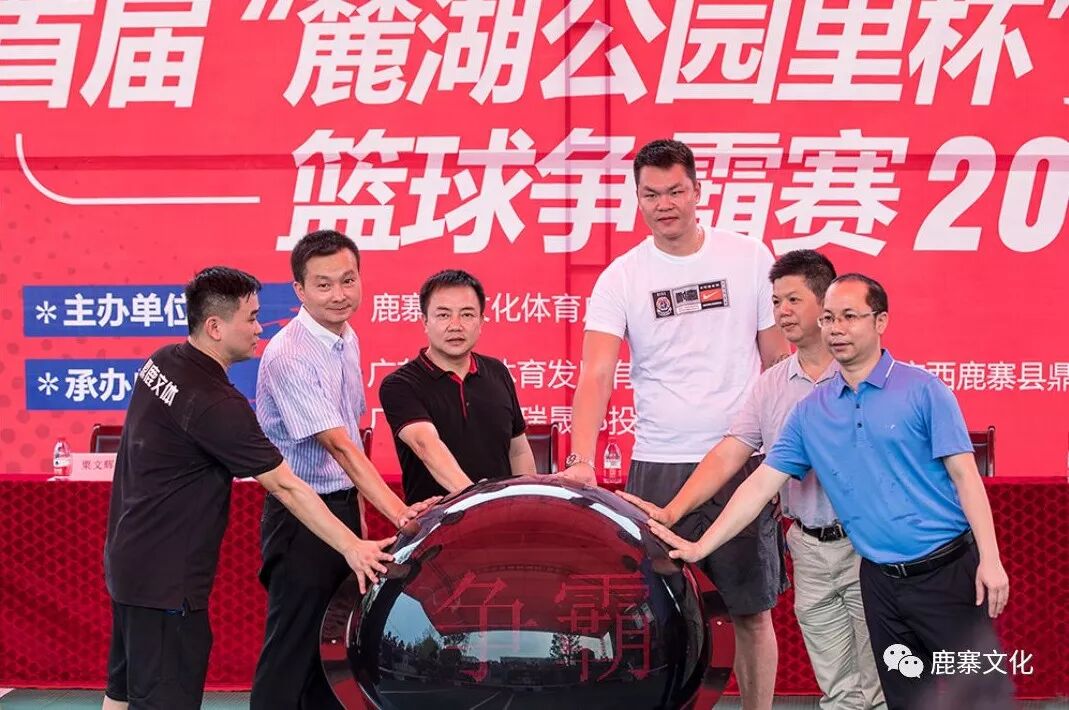 7月21日下午,由鹿寨县文化体育广电和旅游局主办,广东宏远体育发展有限公司广西分公司、广西鹿寨县鼎鹿文体发展有限公司、广西鹿寨县祥瑞晟邦投资有限公司承办的鹿寨县2019年首届“麓湖公园里杯”3V3篮球争霸赛在麓湖公园里建设工地举行开幕式。中共鹿寨县委常委、宣传部部长、副县长陈波致辞,柳州籍著名篮球运动员——广东宏远体育发展有限公司广西分公司总经理朱芳雨先生发表讲话,并与参加仪式的鹿寨县文化体育广电和旅游局分管领导、麓湖公园里项目负责人等嘉宾共同启动水晶球。