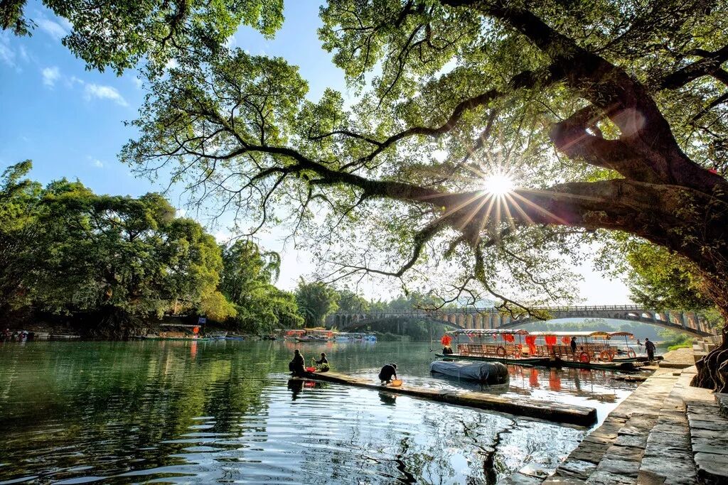 ▲中渡古镇洛江景色。洛江两岸,千年古榕翠绿