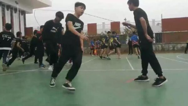 3分钟10人长绳8字跳中学组比赛中