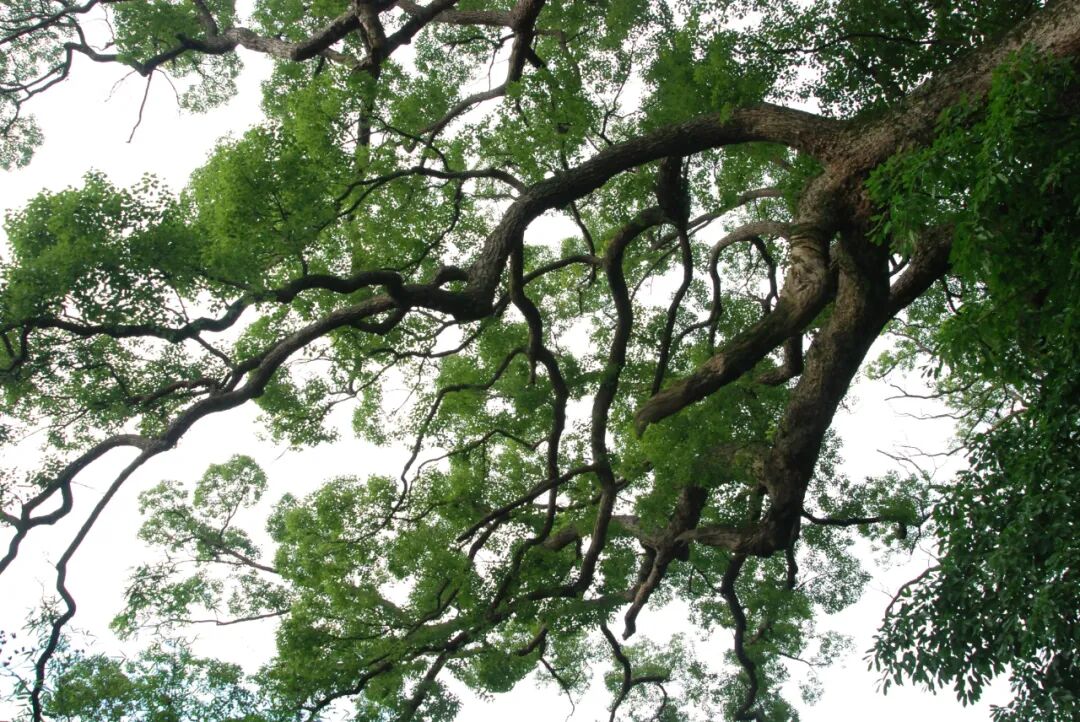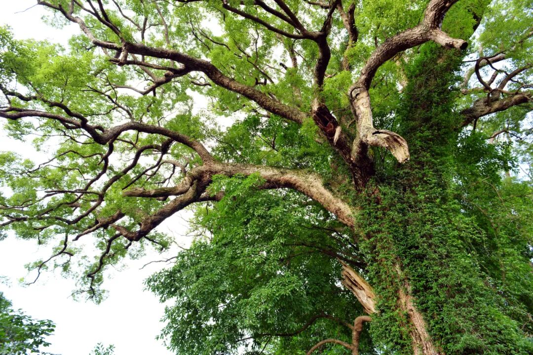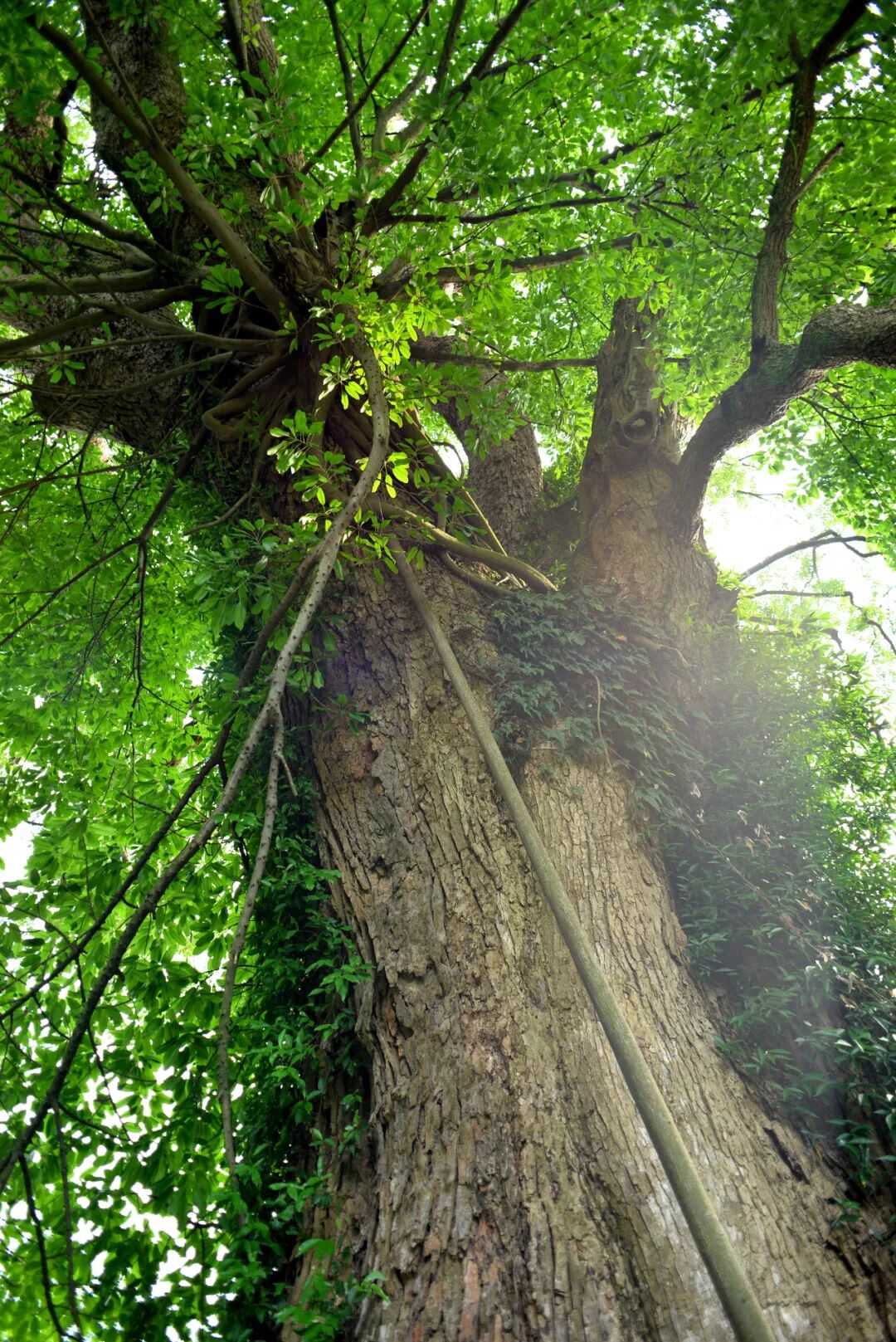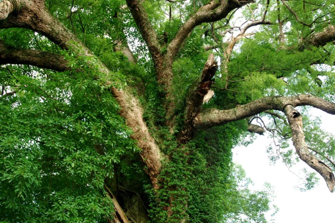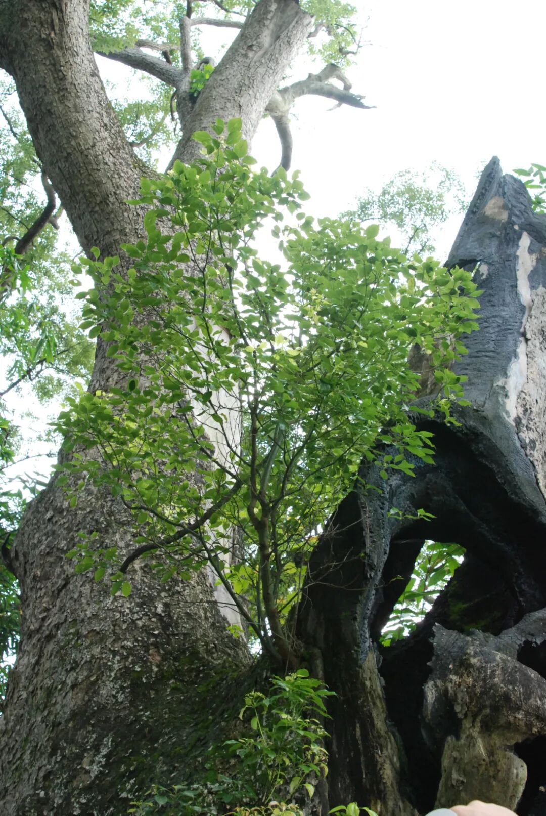 因雷劈等原因,其中一棵树的树干大部分被火烧空,形成了独特的树洞,而树却通过仅存的树干供养枝叶,目前仍叶繁叶茂。