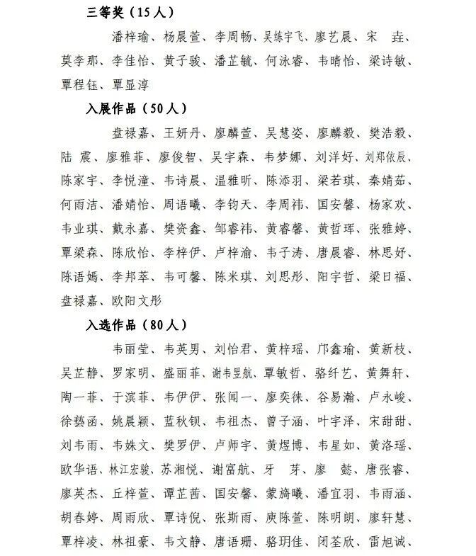 鹿寨县2025年春节系列文体活动之首届“迎春杯”青少年书法大赛入选名单公示