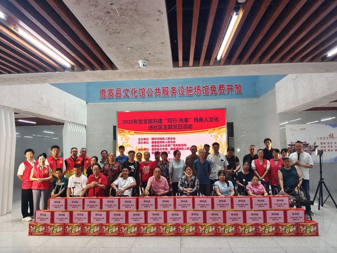 为学习贯彻习近平文化思想,积极推动残疾人文化事业发展,8月12日上午十点,在文化馆的大厅内,开展着2025年鹿寨县残疾人联合会党支部,由鹿寨县文化体育广电和旅游局机关党支部,鹿寨县文化联合支部,鹿寨镇城中社区党支部共建的“同行·共享”残疾人文化进社区主题党日活动。